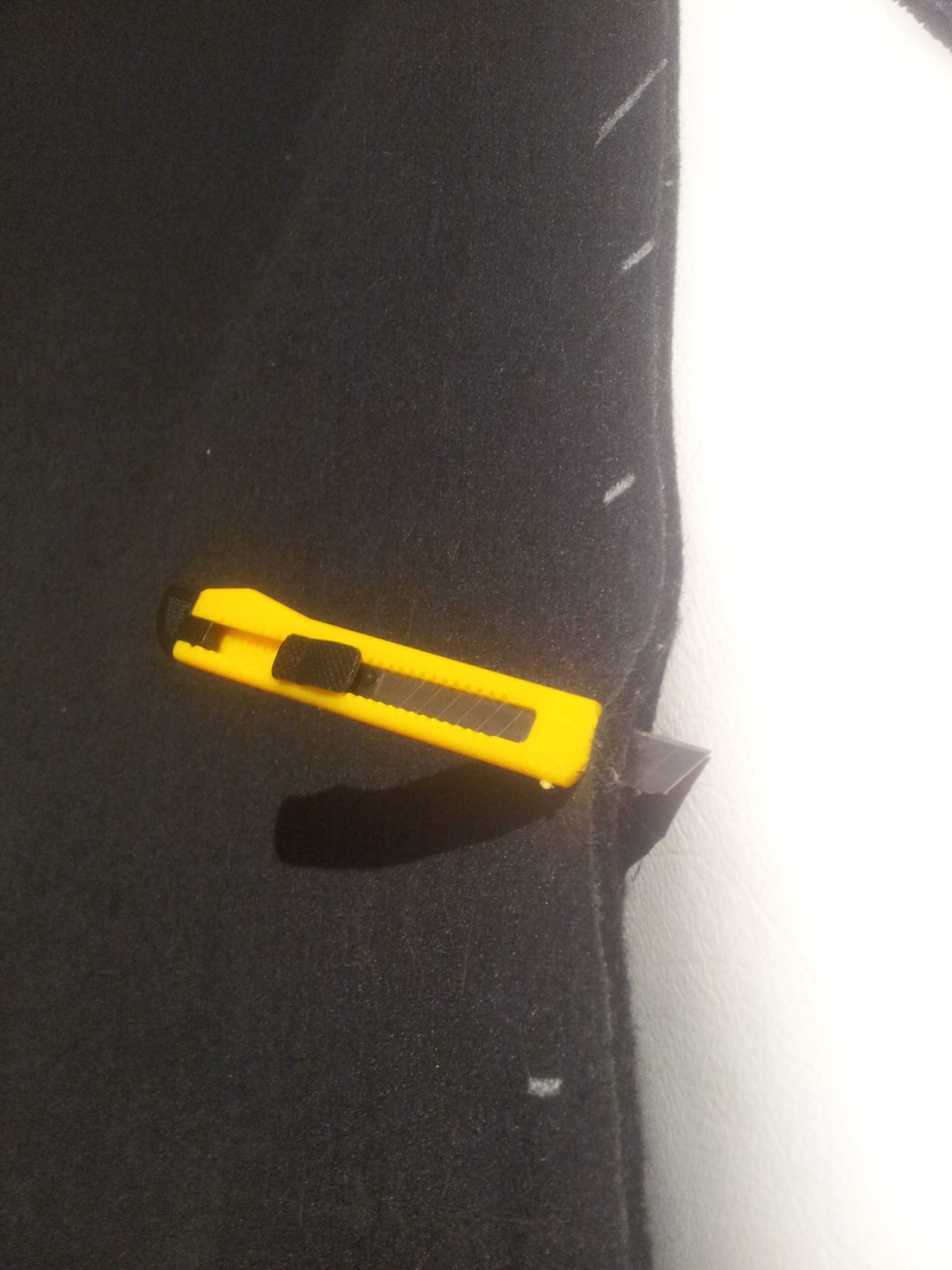 Next you just simply fold felt as pictured below. Inner wall of pouch is one layer of felt. Outer wall of the pouch is double folded. Start with the one of the edges and pierce a whole using the carton cutter knife and then draw the plastic strap out and tighten it a bit. Next go to the other edge and do the same. You will need just two straps for inner pouch edges. If you feel it doesn’t hold strongly enough just add more straps.